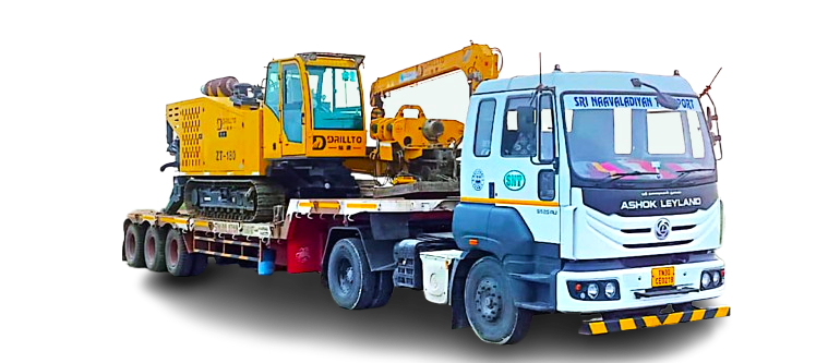 Sri Naavaladiyan Transport (SNT) is a leading provider of heavy earthmoving equipment transportation services, proudly based in Karumbalai, Salem and operating across all parts of India. We specialize in the safe, efficient, and affordable relocation of heavy machinery, including JCBs, Excavators, Bulldozers, Backhoe loaders, Graders, Compactors, and more.
